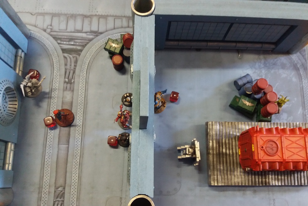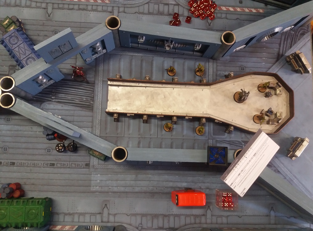 In gespenstischer Stille durchquerte die Gruppe den Mittelgang des Decks und erreichte auf der anderen Seite einen Hangar, in dem weitere Feinde lauerten.